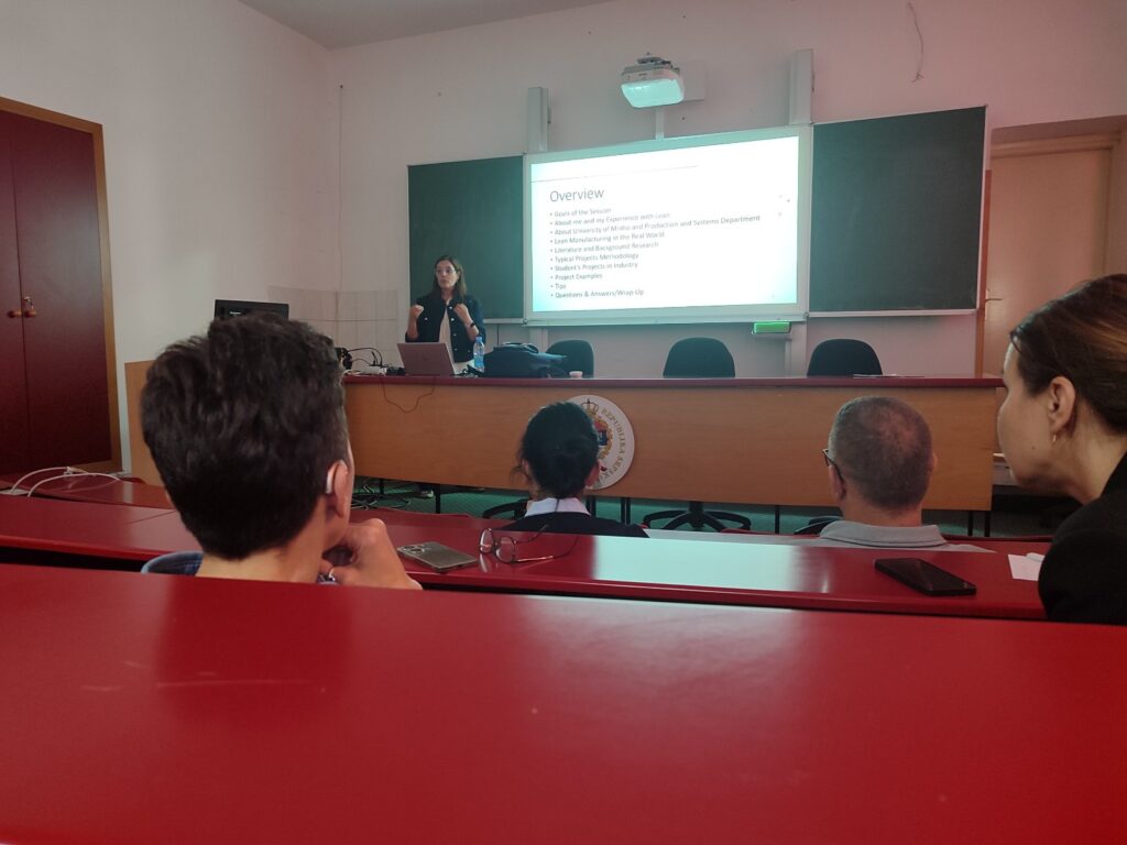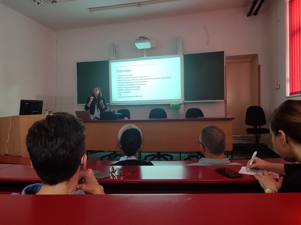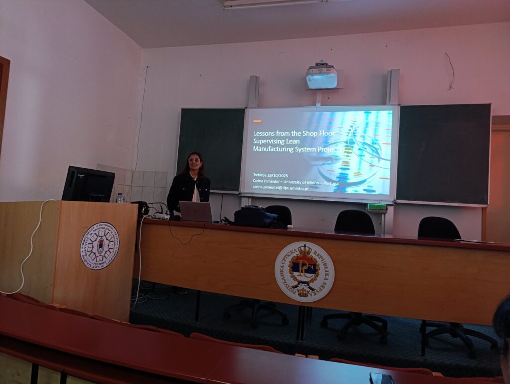 за производњу и менаџмент нека од наставних искустава на пољу индустијског инжењерства и менаџмента, лин производње и техника из управљања квалитетом и организације рада. Професорица Пиментел је 29.10.2025. године одржала предавање на тему