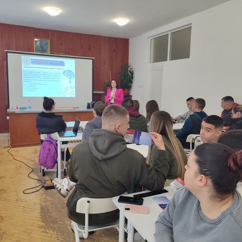 Ученицима смо представили студијске програме, начин организације наставе, могућности стручне праксе и каријерне перспективе након завршетка студија.