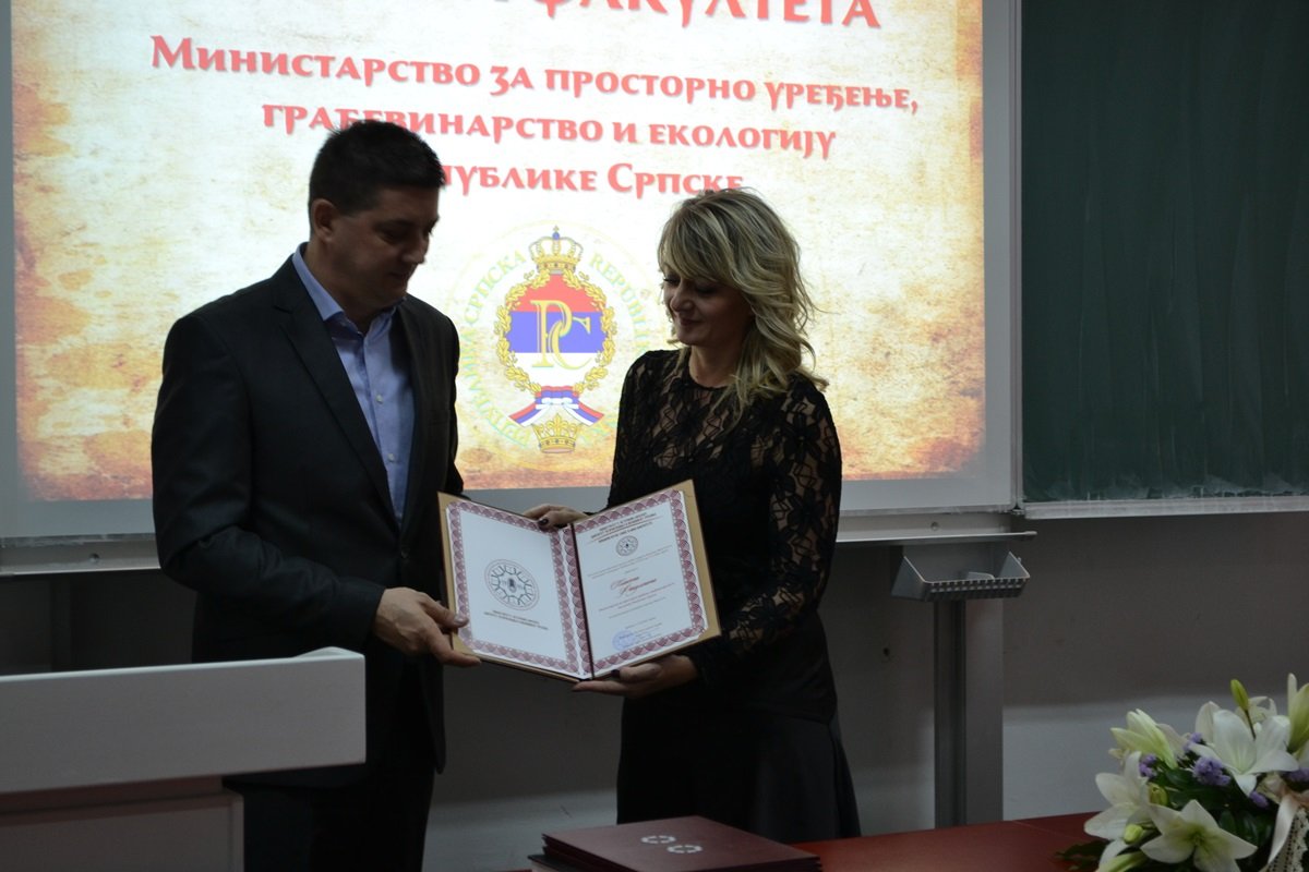 Поводом Крсне славе и Дана факултета додјељена су признања заслужним институцијама. Највеће признање, Плакета Факултета, додјељена је Министарству за просторно уређење, грађевинарство и екологију Републике Српске. Захвалнице за дугогодишњу успјешну сарадњу додјељене су Машинском и Електротехничком факултету Универзитета у Источном Сарајеву и г-дину Спасоју Радовићу за велико залагање током реализације пројекта енергетске ефикасности. Деканова награда за најуспјешнијег студента у 2016. години додјељена је Срђану Сукновићу, апсолвенту на студијском програму Индустријско инжењерство за енергетику.