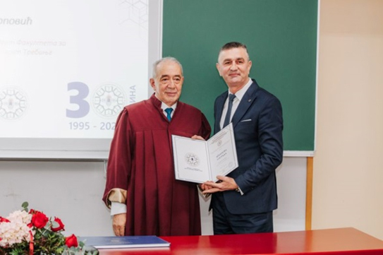 Градоначелник града Требиња г-дин Мирко Ћурић, члановима колектива и студентима честитао је Крсну славу, Дан факултета и јубилеј „30 година Факултета за производњу и менаџмент Требиње“ и истакао да је веома поносан на ову образовну установу, јер су инжењери који су завршили овај факултет на кључним позицијама у граду и широј регији. Градоначелник је такође нагласио да је градска управа можда једна од ријетких локалних заједница која студентима већ на првој години даје стипендије, што даје додатни допринос већем упису студената на факултете у Требињу. Градоначелник Ћурић се захвалио ректору, декану, ресорном министру, предсједнику и премијеру РС који су заједно са деканом Факултета техничких наука из Новог Сада проф. др Борису Думнићу и претходним деканом проф. др Срђаном Колаковићем покренули студијски програма Инжењерство информационих система и технологија, што је значајно допринијело да се упише већи број студената.