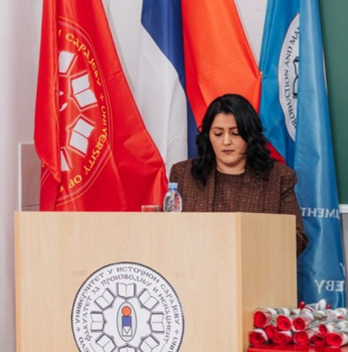У име промовисаних дипломираних инжењера и мастера индустријског инжењерства присутнима се обратила Маја Марковић, дипломирани инжењер индустријског инжењерства за енергетику. У свом обраћању Маја се, између осталог, захвалила наставницима и асистентима на пренесеном знању и подршци, као и свима који су их током студентског пута бодрили и помагали.