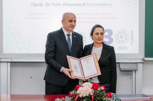 С обзиром да ове године Факултет обиљежава јубилеј „30 година Факултета за производњу и менаџмент Требиње“ Деканова награда је додијељена: