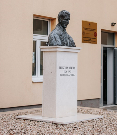 Послије свечане церемоније, положено је цвијеће на споменик Николи Тесли, у дворишту ове високошколске установе.
