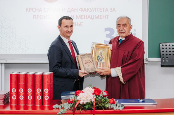 Ректор Универзитета у Источном Сарајеву проф. др Милан Кулић је члановима колектива и студентима честитао Крсну славу, Дан факултета и јубилеј „30 година Факултета за производњу и менаџмент Требиње“ и изразио задовољство оним што су професори, студенти и сви запослени дали за Универзитет у Источном Сарајеву и РС. Ректор Кулић је рекао да професори и студенти који раде на овом факултету објављују научноистраживачке радове у квалитетним међународним часописима и да сваке године неко за дан Универзитета добије признање и награду за постигнуте резултате у научноистраживачком раду. Поред тога, ректор Кулић је нагласио да је Факултет за производњу и менаџмент Требиње ове године уписао 41 студента, што је највише у посљедњих 10 година, као и да велики значај за Факултет има покретање новог студијског програма „Инжењерство информационих система и технологија“ који је покренут у сарадњи са Факултетом техничких наука из Новог Сада.